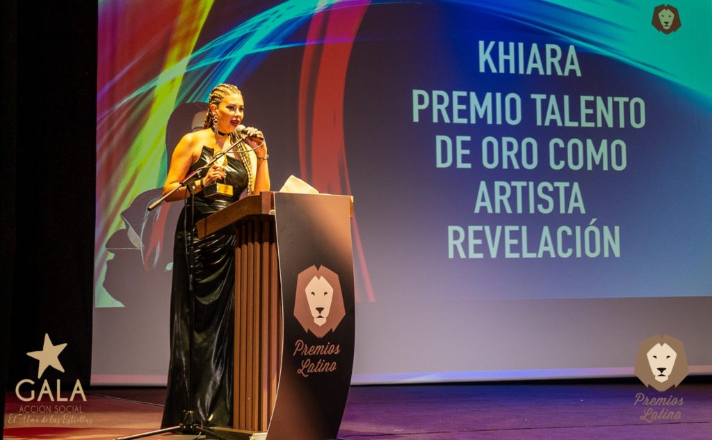Premios Latino otorgó a Khiara el premio Talento Latino de Oro como Artista Revelación en la pasada edición que se celebró el 10 de noviembre de 2025 en el Teatro Infanta Isabel